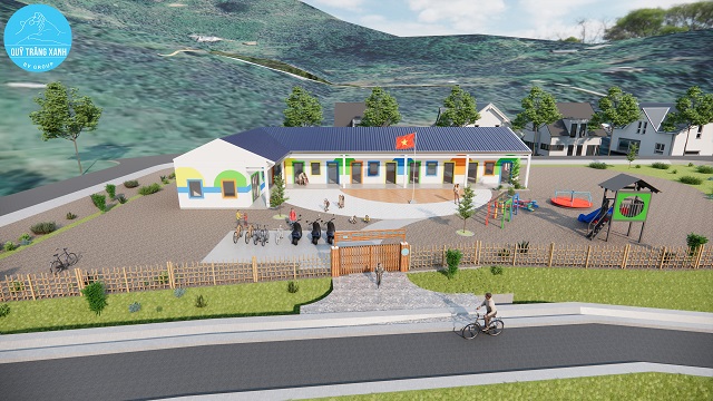 Phối cảnh điểm Trường Mầm non – Tiểu học Ma Sang tại xã Lê Lợi, tỉnh Lai Châu do Quỹ Trăng Xanh tài trợ xây dựng